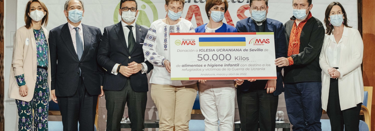 - Tras la presentación de la Memoria de Actividades 2021, Fundación MAS y Grupo MAS han hecho entrega de un cheque de 50 toneladas de alimentos y productos de higiene a la comunidad ucraniana, fruto de la campaña de recogida en nuestros establecimientos enmarcada en el plan “Ayudemos a Ucrania entre todos”.