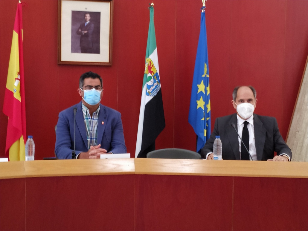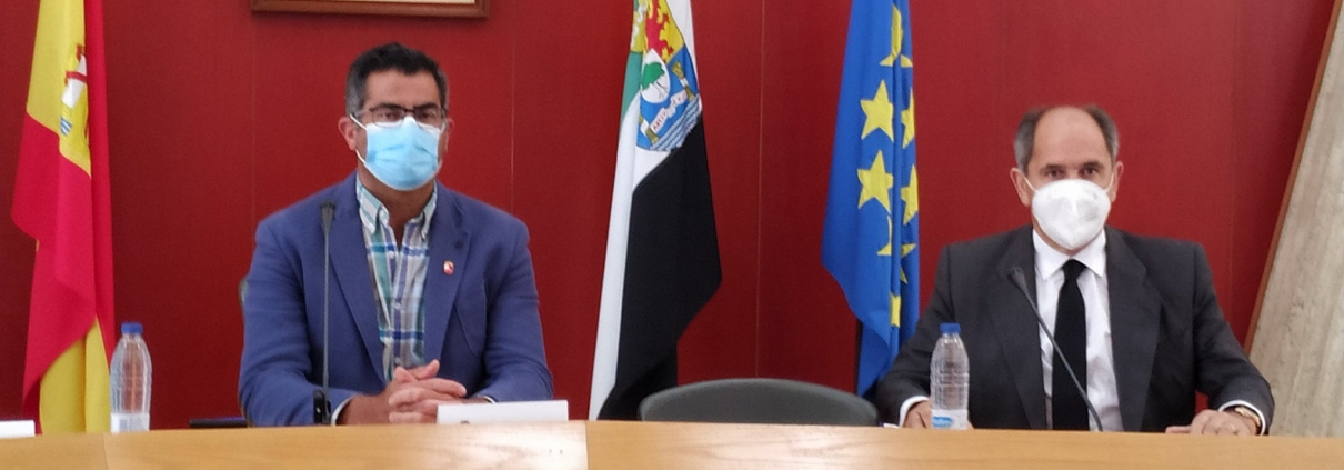 El Presidente de Grupo MAS, Vicente Martín González, y el Alcalde de la localidad extremeña de Villafranca de los Barros, José Manuel Rama; han acudido a la presentación del próximo establecimiento Cash Fresh, ubicado en la localidad y que supondrá la creación de 15 puestos de empleo en el municipio.