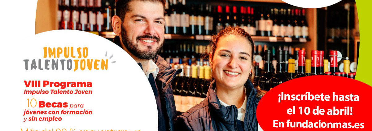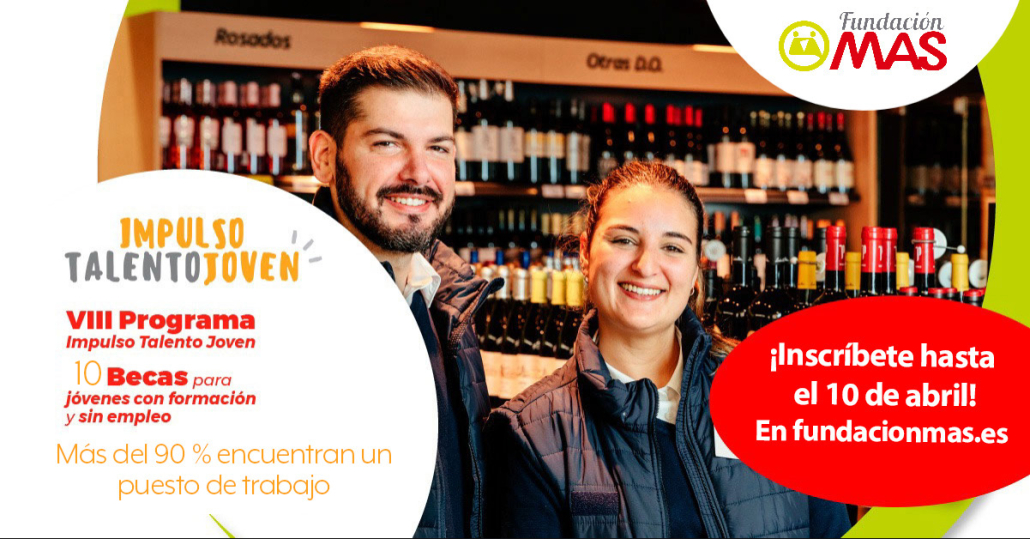 Desde Grupo y Fundación MAS abrimos el plazo de solicitudes para 10 becas del VIII Programa Impulso Talento Joven 2023. Esta convocatoria, destinada a jóvenes entre 18 y 35 años en situación de desempleo, ofrece la oportunidad para formarse en un puesto de Mando Intermedio como es la gerencia de un establecimiento comercial.